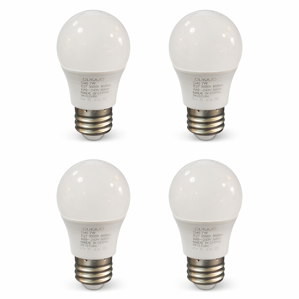 OUKAJO 7W Energy Saving G45 Light Bulb 660lm Warm White E27 (4 Pack)