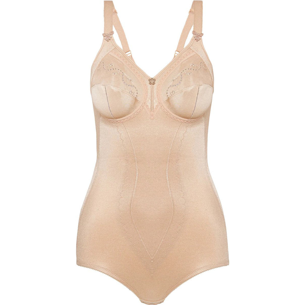 This body offers a soft cotton‑blend fabric that feels gentle against the skin. The V‑neck and wide, adjustable straps provide a personalized fit. Seamless leg openings...