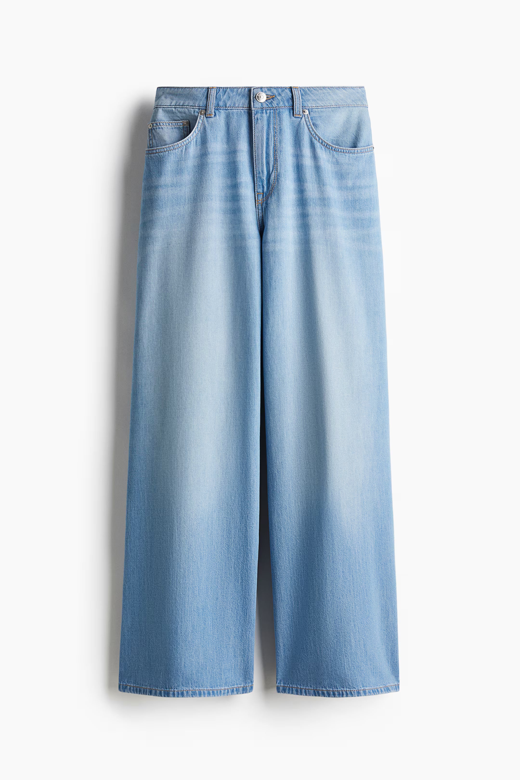 Discover ultimate comfort and effortless style with these baggy wide-leg jeans, designed for a modern low-rise fit. Crafted from durable denim, they offer a relaxed silhouette...