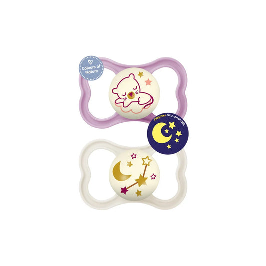 MAM Air Night Silicone Orthodontic Pacifiers (Pink/Beige, 6-16m, 2-pack)
