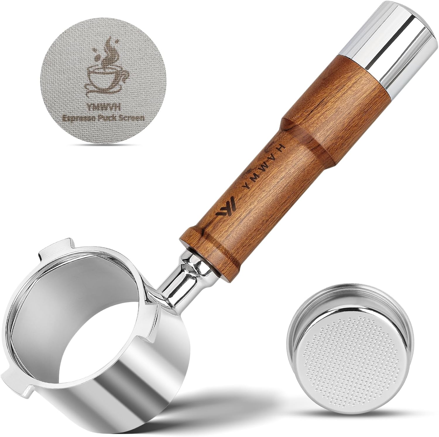 YMWVH 51mm Bottomless Portafilter with Walnut Handle for DeLonghi