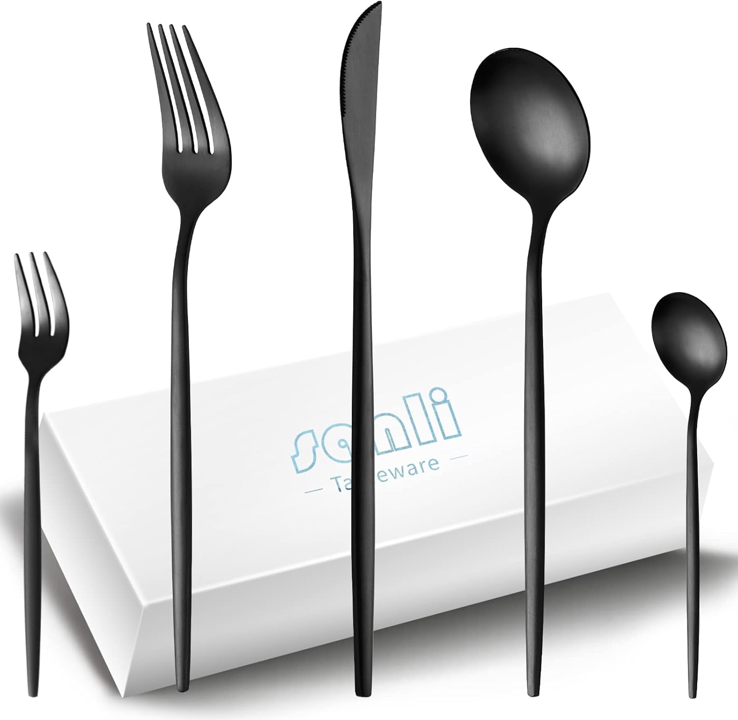 Sanli Matte Black 60-Piece Cutlery Set for 12 People