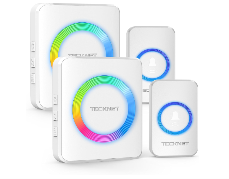 TECKNET Wireless Doorbell Kit: 400m Range, IP65 Waterproof, 2 Receivers