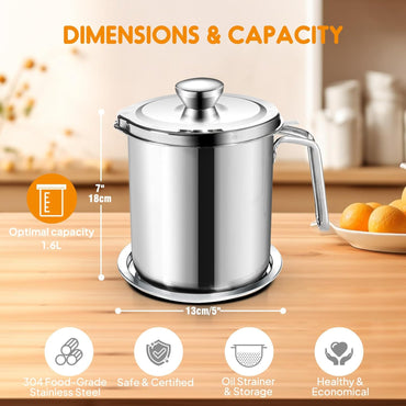 Chihee 2L Stainless Steel Oil Strainer Pot with Fine Mesh and Non‑Slip Base