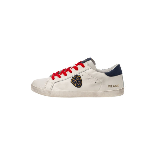 Pollini Men's White Calf Leather Sneaker with Rubber Sole