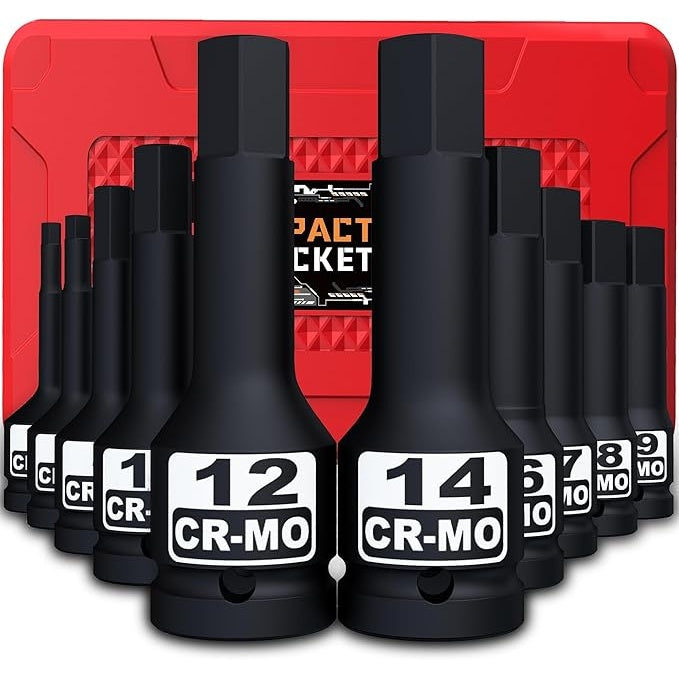 KIRXST 1/2 Inch Impact Hex Bit Socket Set 10 Metric Sizes