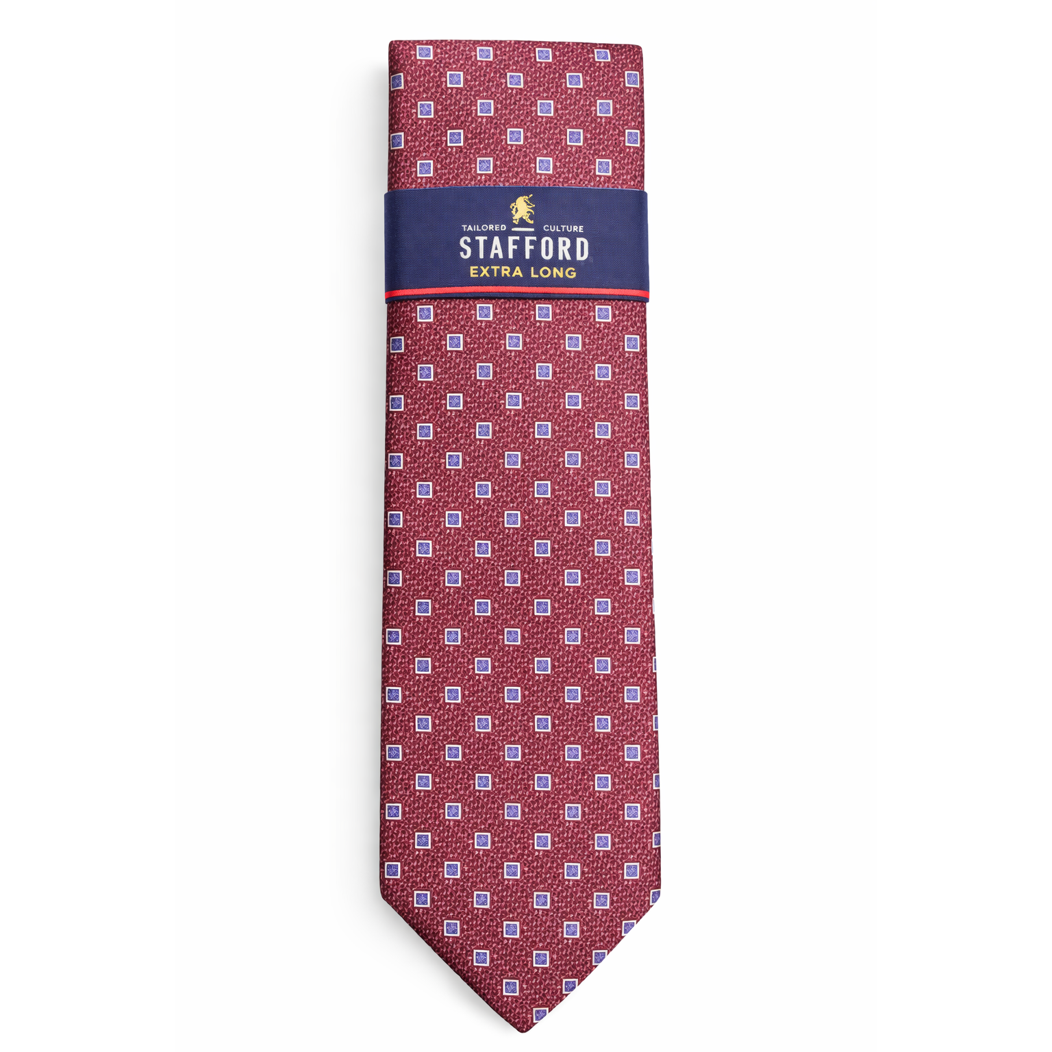 Stafford Men's Burgundy Tie with Blue Pattern Extra Long