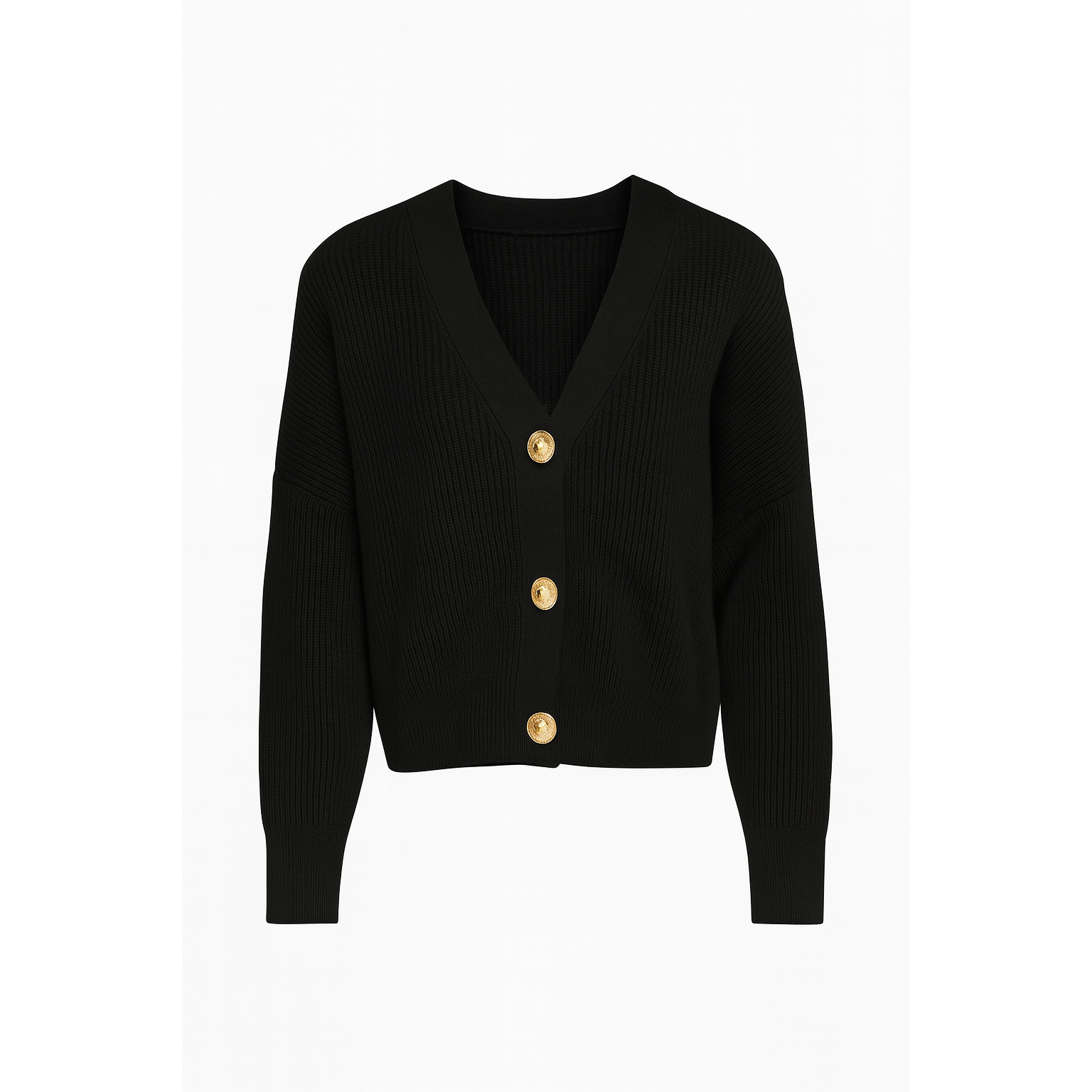 GRECERELLE Women's Lightweight Black Knitted V‑Neck Long Sleeve Button‑Down Cardigan