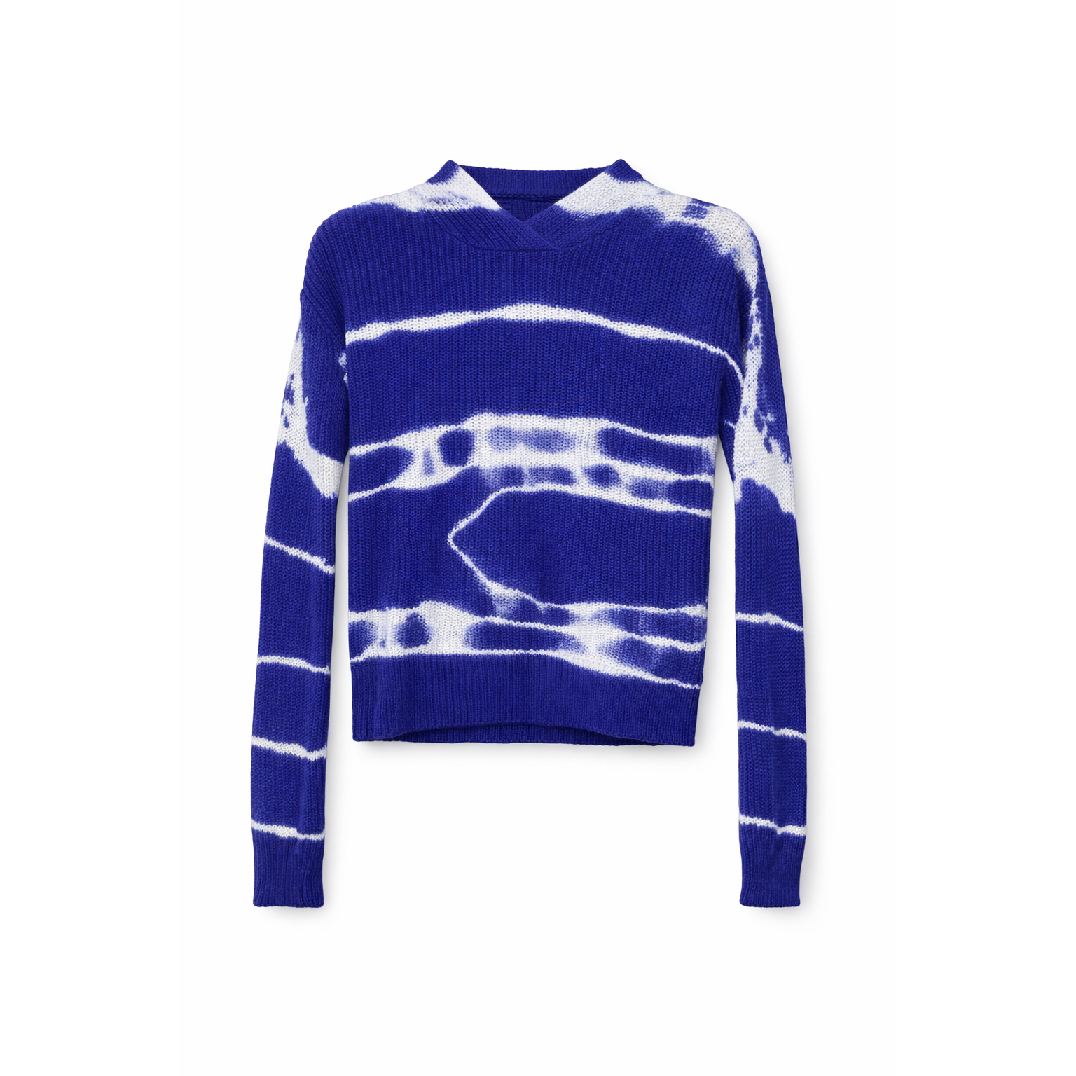 It’s Our Time Tie-Dye Knit Hoodie Sweater – Blue & White