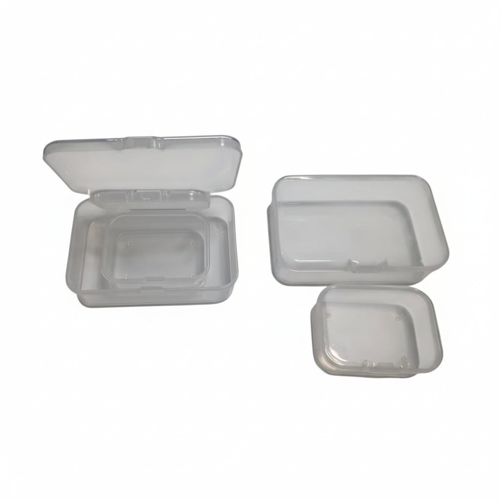 Regular price $5.00Sale price $5.00 Regular priceUnit price / perThese clear rectangular boxes are made from durable PP plastic, offering a sturdy, lightweight solution for organizing small items. Each box features a hinged lid with...
