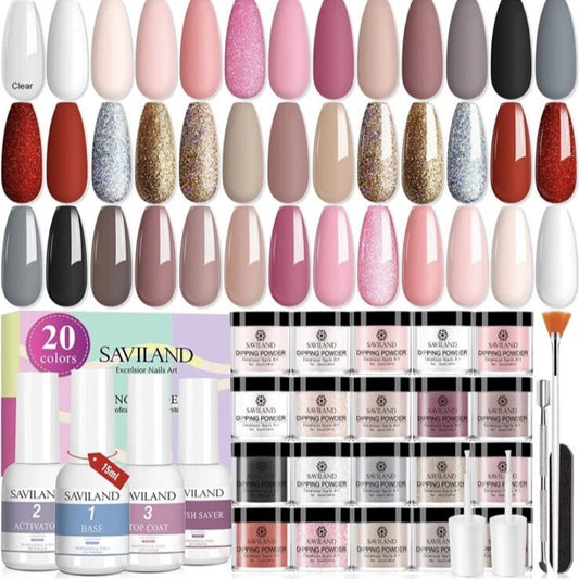 Saviland 20-Color Dipping Powder Nail Kit with Vibrant Shades