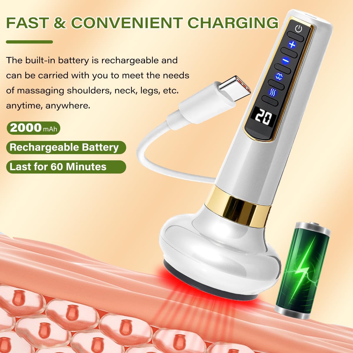 Feel the deep, soothing pull of intelligent cupping as it melts tension from your back and muscles. Twelve adjustable intensity levels let you tailor heat and suction for a personalized massage experience. The lightweight, rechargeable design fits perfectly in your hand, making it easy to bring relief to the gym, office, or travel. Smooth silicone cups also gently scrape skin, promoting circulation and a firmer feel.
