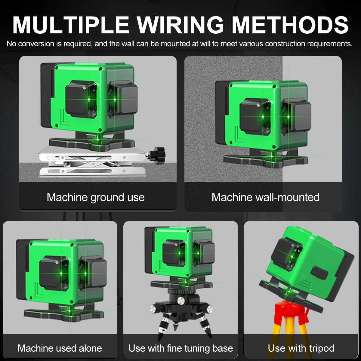 16-Line Self-Leveling Green Laser Level Tool with Rotary Measure
