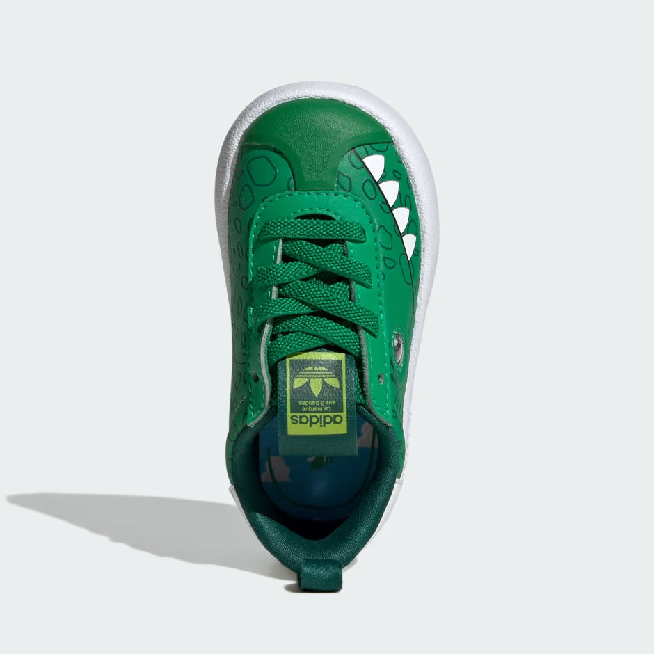 The magic of play is irresistible! This adidas infant shoe celebrates the lovable dinosaur Rex from Disney Pixar’s Toy Story. It features an ultra-lightweight breathable mesh upper with elastic laces for easy on and off.