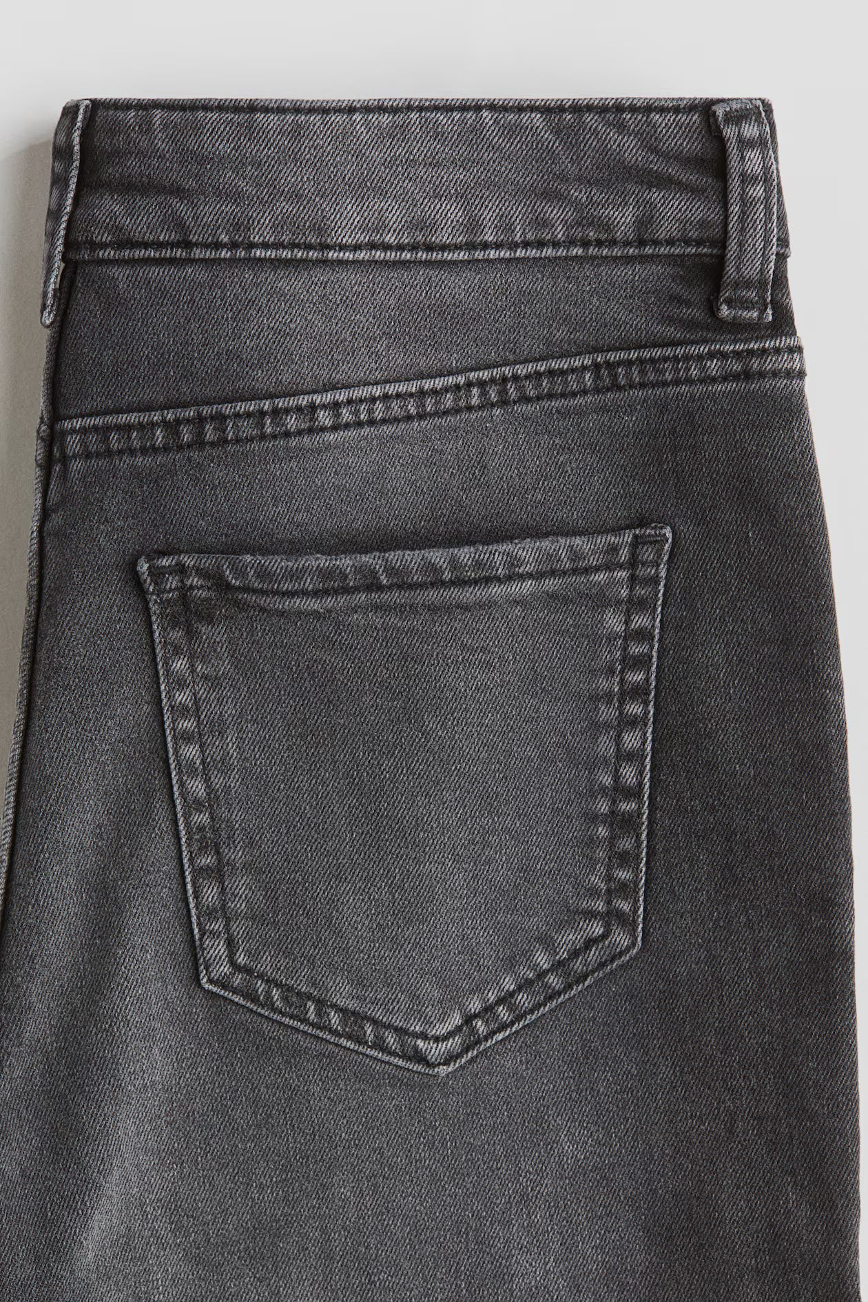 5-pocket jeans in washed denim with a baggy fit through hip and thigh. Low waist, adjustable elastic at waistband for best fit, and zip fly with button. Dropped gusset and flared legs.