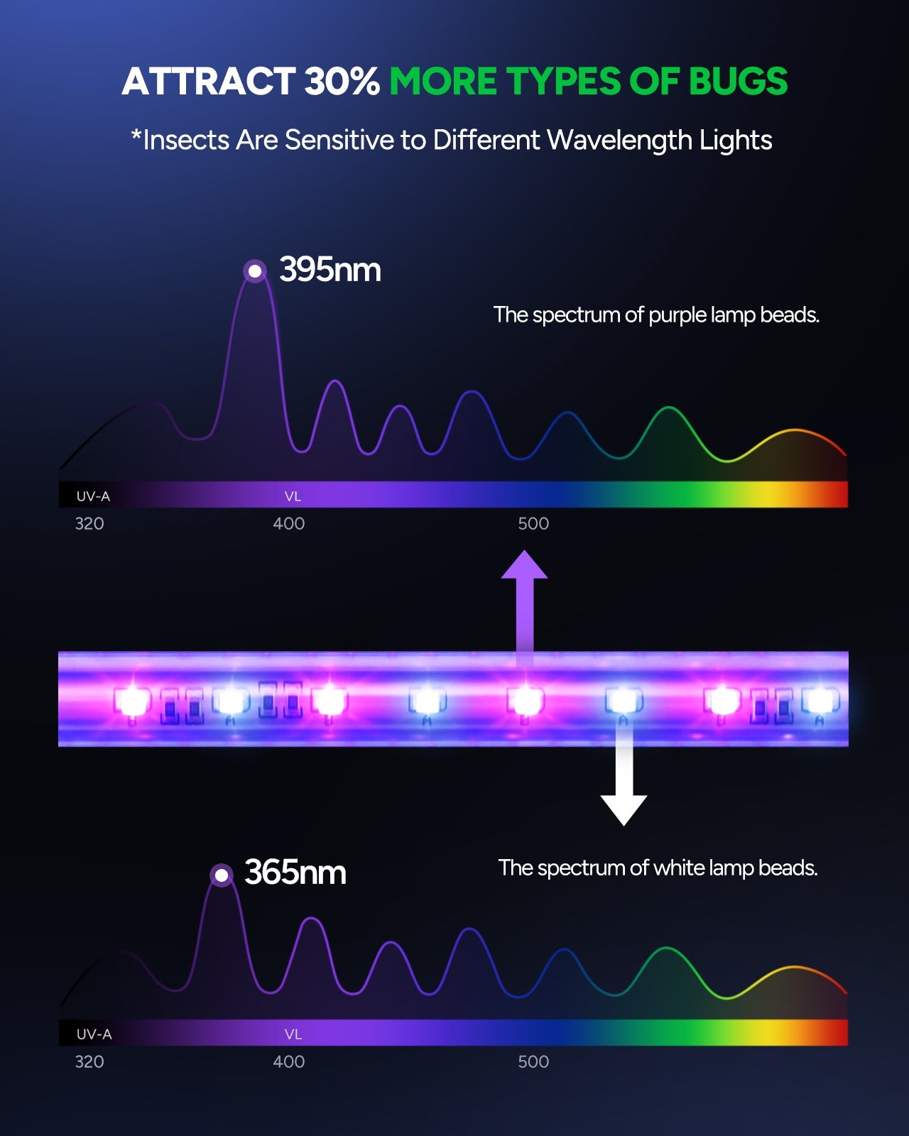| Attraction Spectrum | 365nm & 395nm UV LEDs |