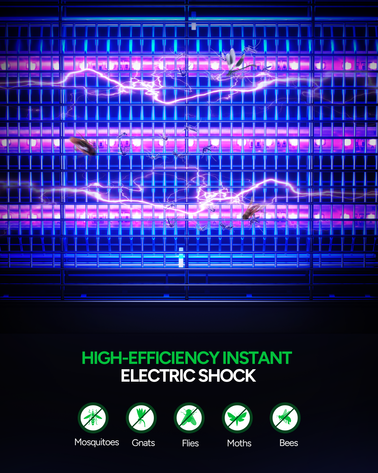Three energy‑efficient 4W LED lamps emit a dual‑spectrum glow that lures a wide range of insects. A 3800V high‑voltage grid delivers instant electric elimination while staying safe for kids and pets. The detachable protective grid and removable tray make cleaning a breeze, and the hanging chain lets you suspend it anywhere indoors. Ideal for homes, offices, kitchens, and even hospitals, this zapper works quietly and reliably.