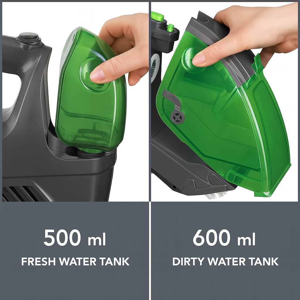 Say goodbye to stubborn stains with this wireless wonder, a true champion for keeping your upholstery, mattresses, carpets, and car seats spick and span. Its portable and handy design ensures you can tackle messes anywhere, anytime. Powered by a robust 2200 mAh battery, it offers up to 15 minutes of continuous cleaning action. This cleaner makes quick work of dirt, leaving your surfaces fresh and clean.