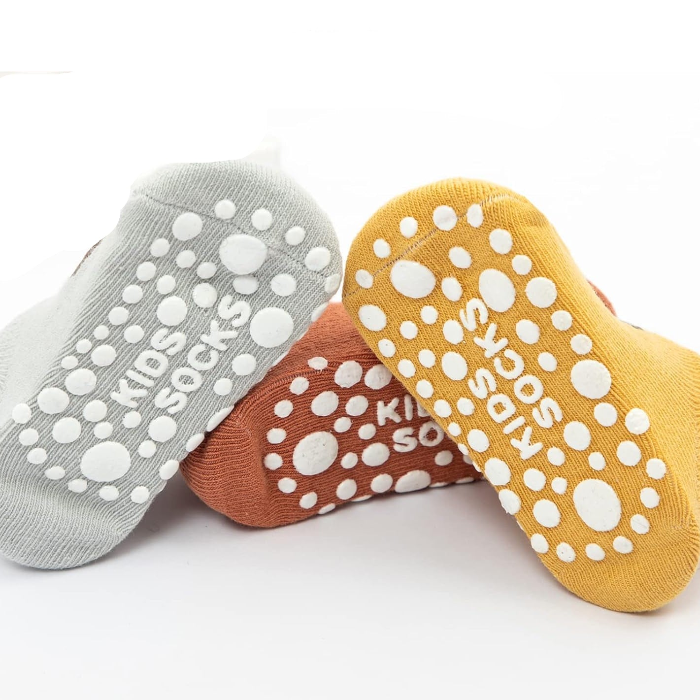 These soft, breathable socks keep tiny feet cozy while the playful animal prints add a dash of fun. The silicone grippers on the sole prevent slips on hardwood or tile, giving parents peace of mind. Easy‑stretch cotton ensures a snug fit for toddlers aged 1‑3 years and stays in place during active play. Machine‑washable and durable, they stay bright and stretchy even after many washes.