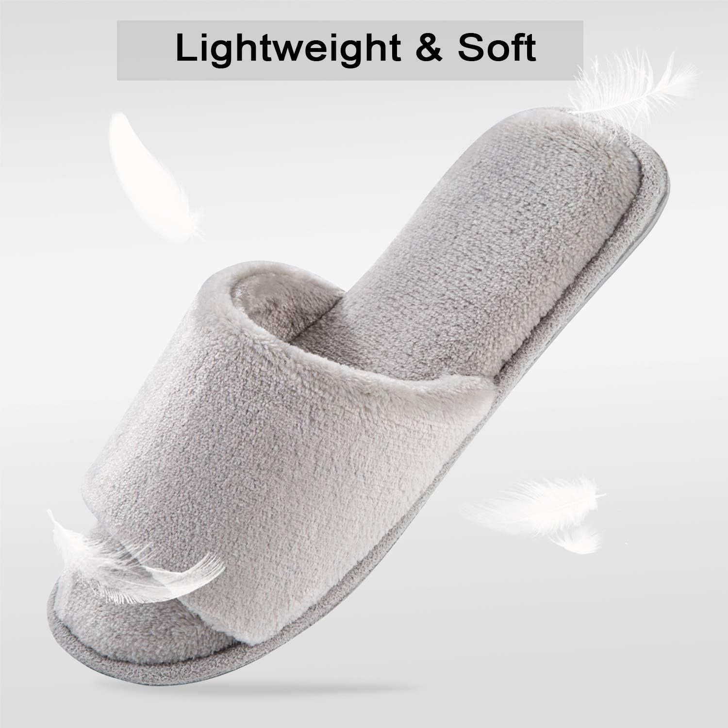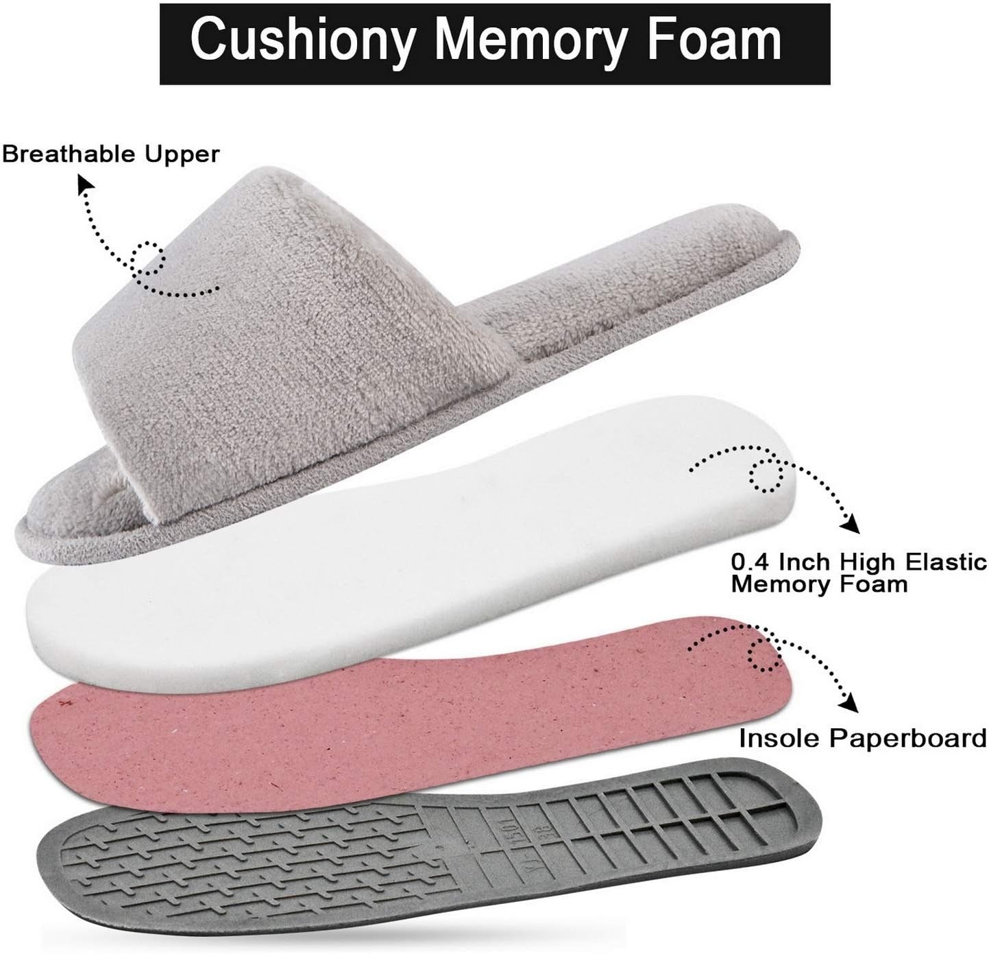 DL Cozy Memory Foam Open Toe Flannel Slippers for Women - Summer Indoor Slides
