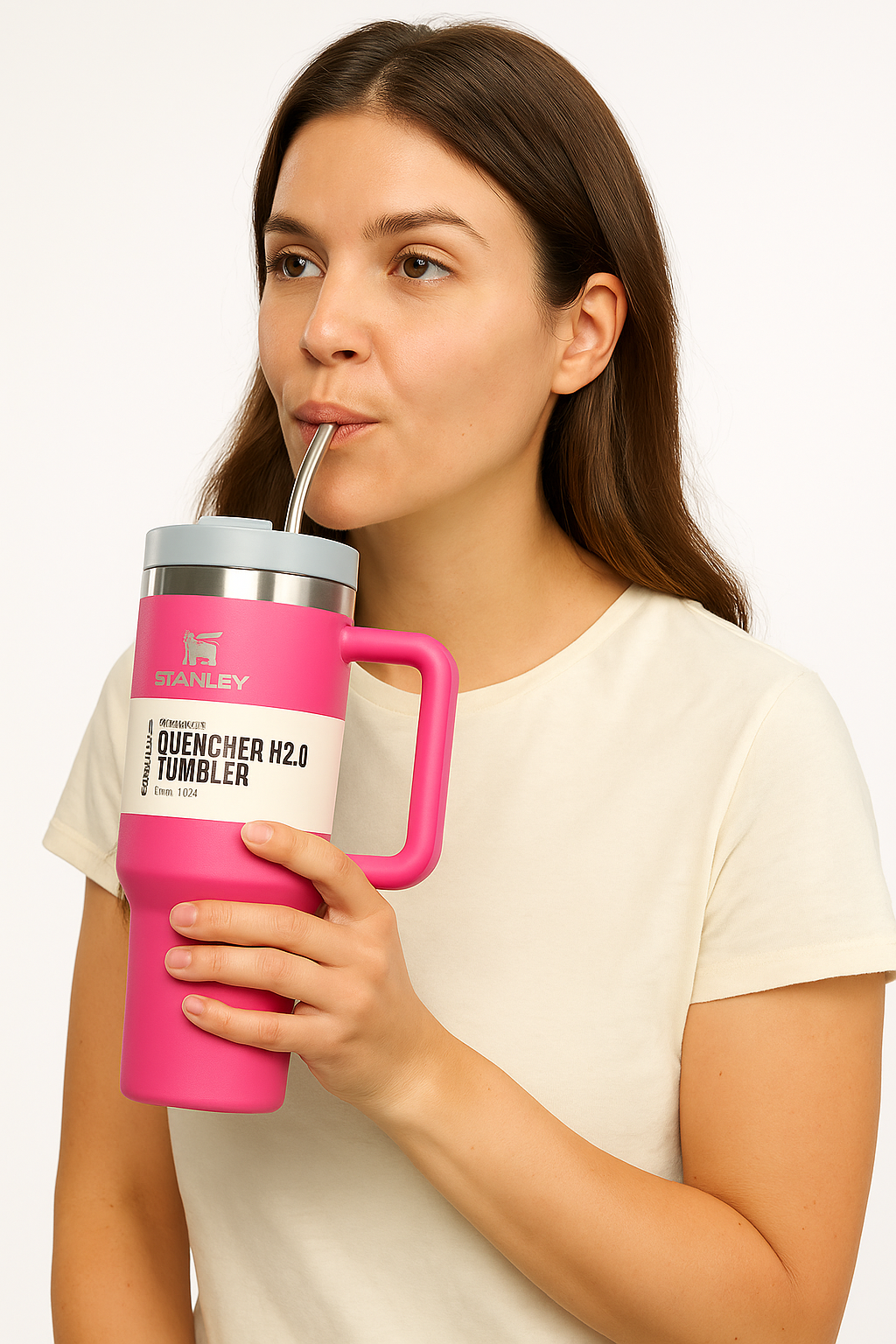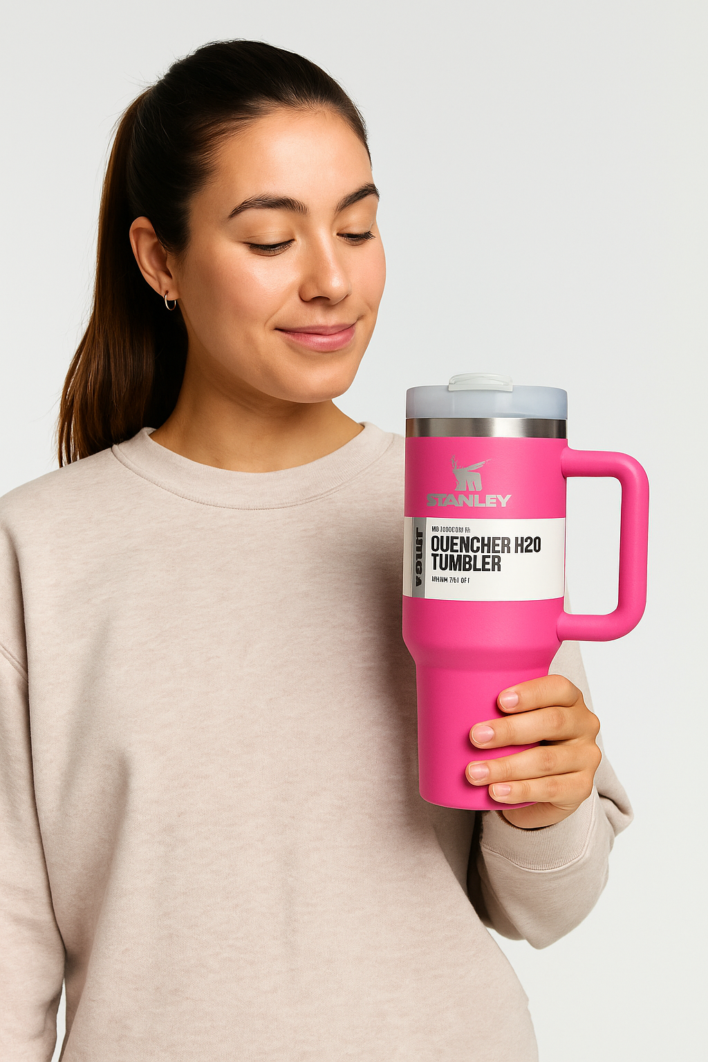 Add a splash of vibrant style to your hydration routine with this eye-catching hot pink Stanley Quencher. Built with high-quality materials, this 40oz tumbler is ready for any adventure, ensuring your drinks stay perfectly chilled or delightfully warm. The ergonomic handle offers a comfortable, easy grip, making it your go-to companion for daily use or outdoor excursions. Stay refreshed and fabulous with this must-have tumbler, designed for both practicality and panache.