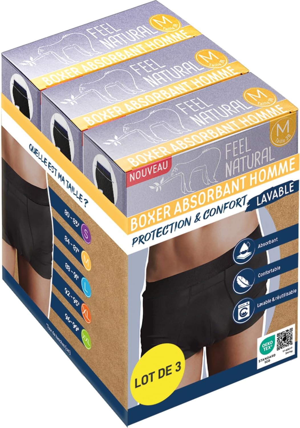 - Tags: Anti‑leakage boxer, Created by product upload, Eco‑friendly underwear, Feel natural, Medium size, Men's incontinence underwear, Pack of 3, Reusable male incontinence, Washable boxer