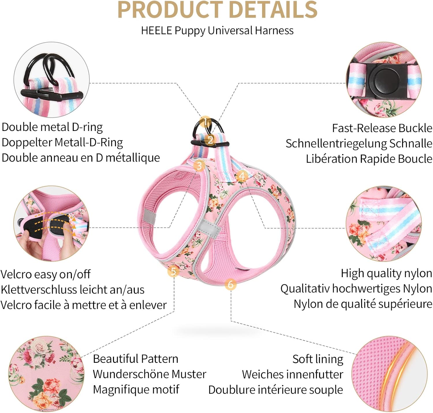 HEELE Dog Harness Soft Mesh Vest for Small Medium Dogs - Pink Flower