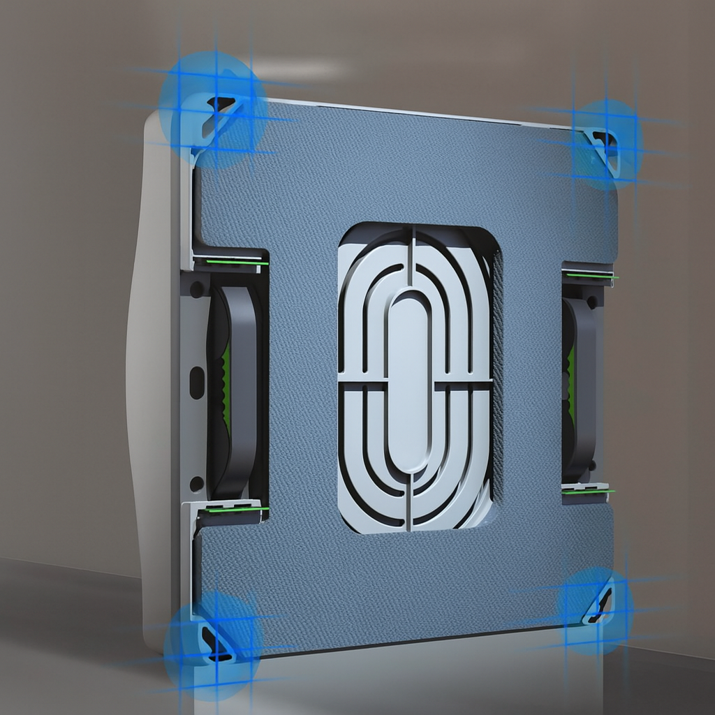 The HUTT W8 glides across glass surfaces, spraying a fine mist from both sides for a spotless shine. Its 3800 Pa suction power holds firm even on damp panes, while the 80 ml tank cleans up to 35 m² per fill. Edge and obstacle sensors keep the robot safe, and a 6 m safety rope prevents accidental drops. All this comes in a sleek cordless design you can control with a single button or remote.