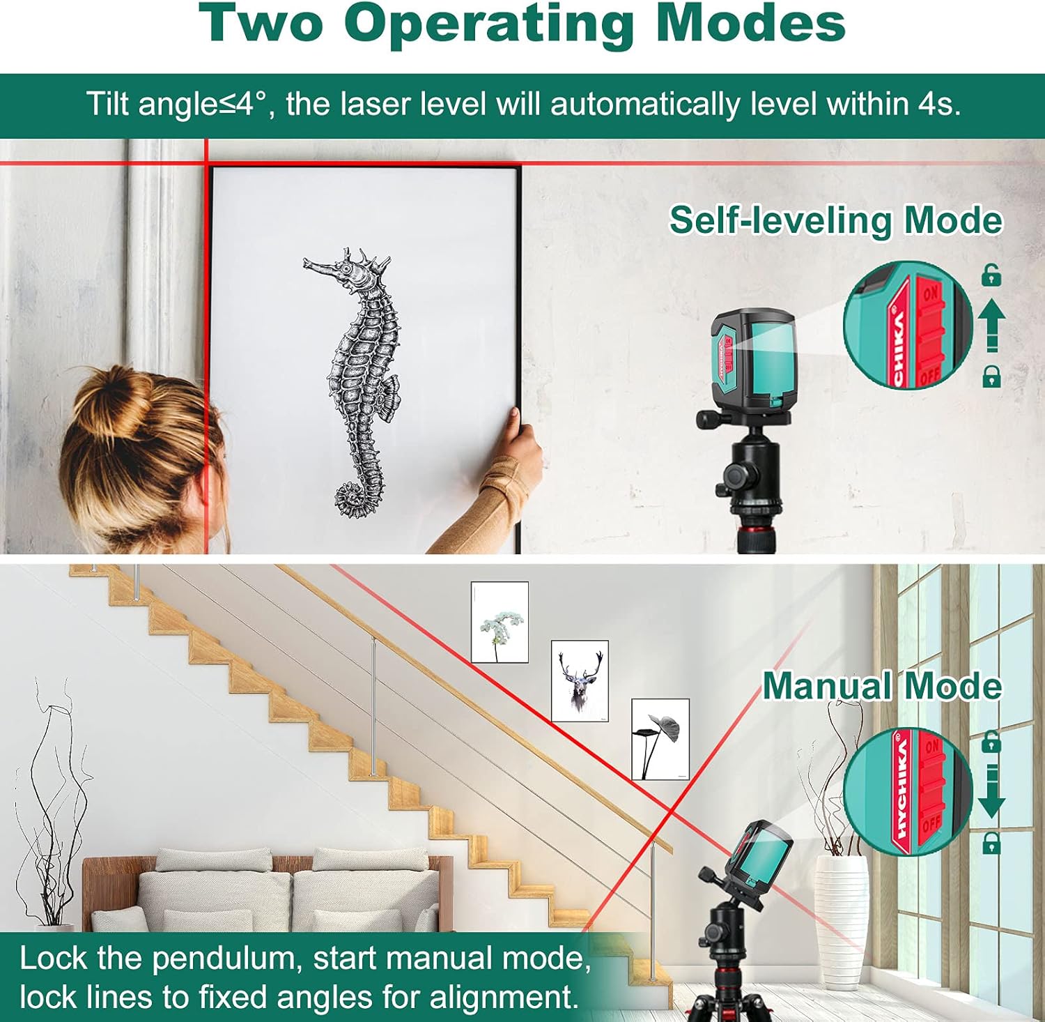 Hychika 15.24m Self-Leveling Cross Line Laser Level with Dual Modules