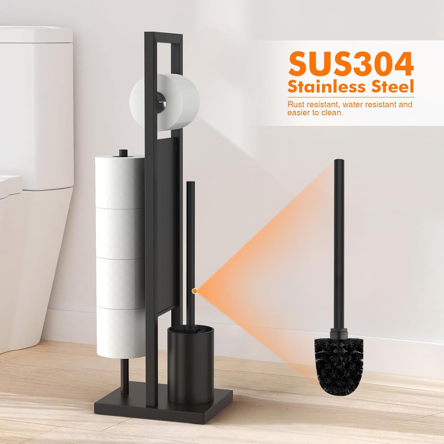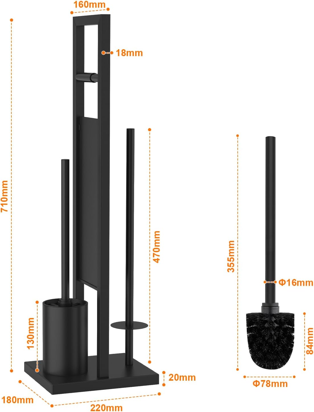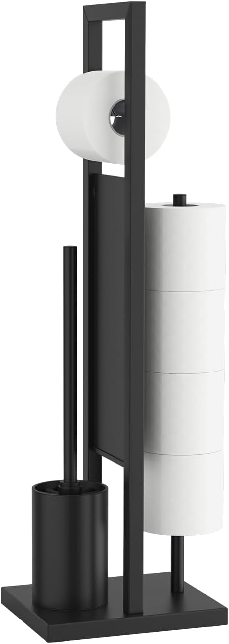 Ibergrif Black Freestanding Toilet Roll Holder with Brush Set