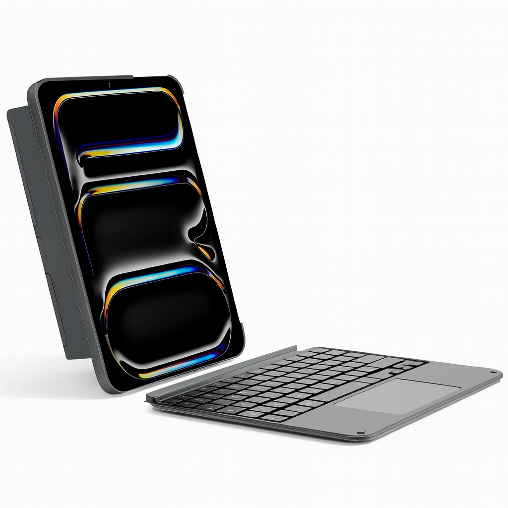 Turn your iPad Pro into a sleek workstation with this feather-light keyboard that snaps on and off in a flash. The integrated touchpad glides smoothly, letting you swipe, click, and scroll without lifting a finger. Adjust the magnetic stand to portrait or landscape and enjoy typing comfort thanks to the 1 mm scissor-switch keys. All this fits in a slim 7.6 mm profile and weighs just a pound, perfect for on-the-go creativity.
