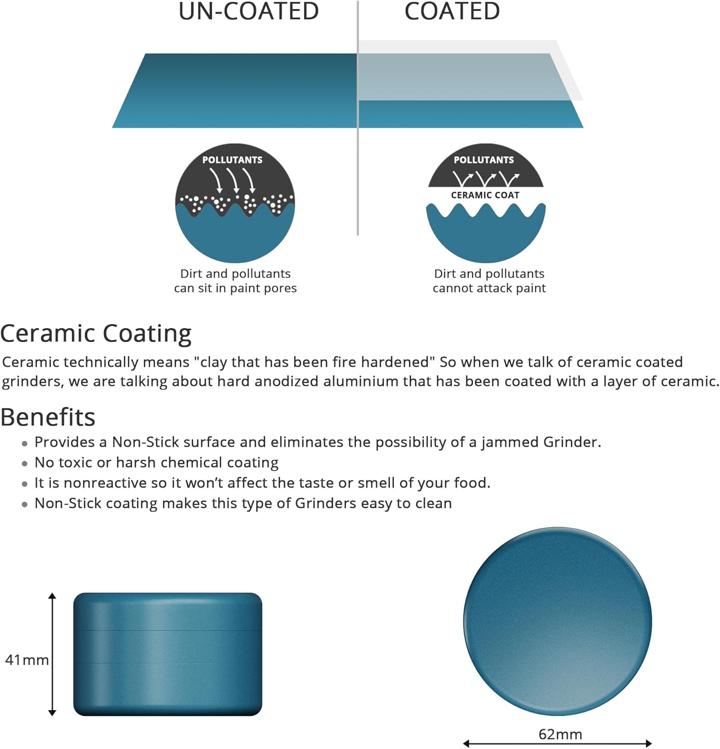 - Tags: 62mm grinder, Ceramic herb grinder, Created by product upload, Green grinder, Magnetic closure grinder, Non-stick spice mill, Razor sharp grinder