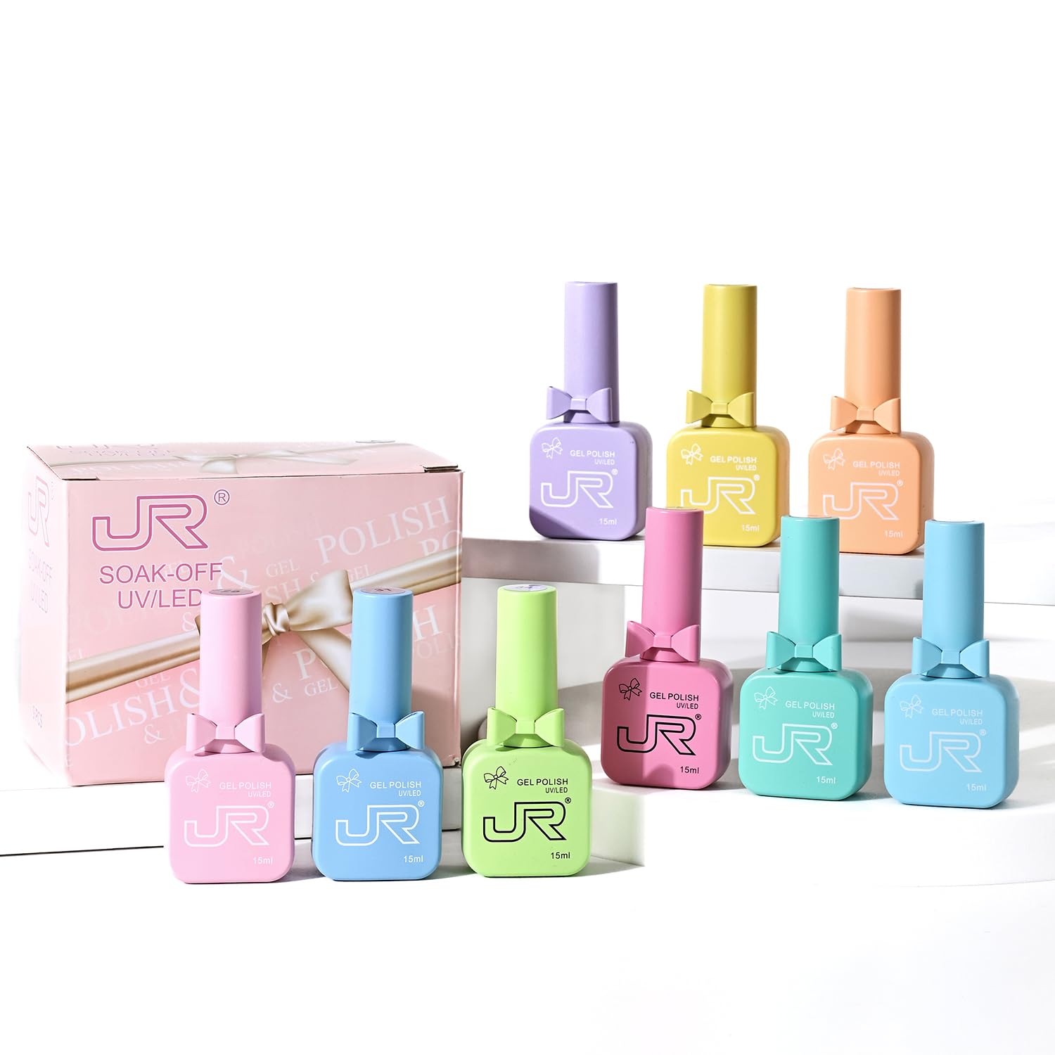 JR 9-Piece 15ml Summer Gel Nail Polish Kit: UV LED Soak-Off.