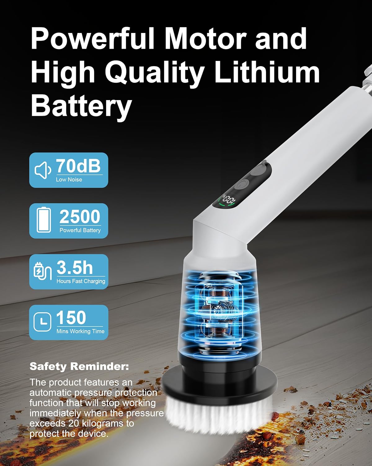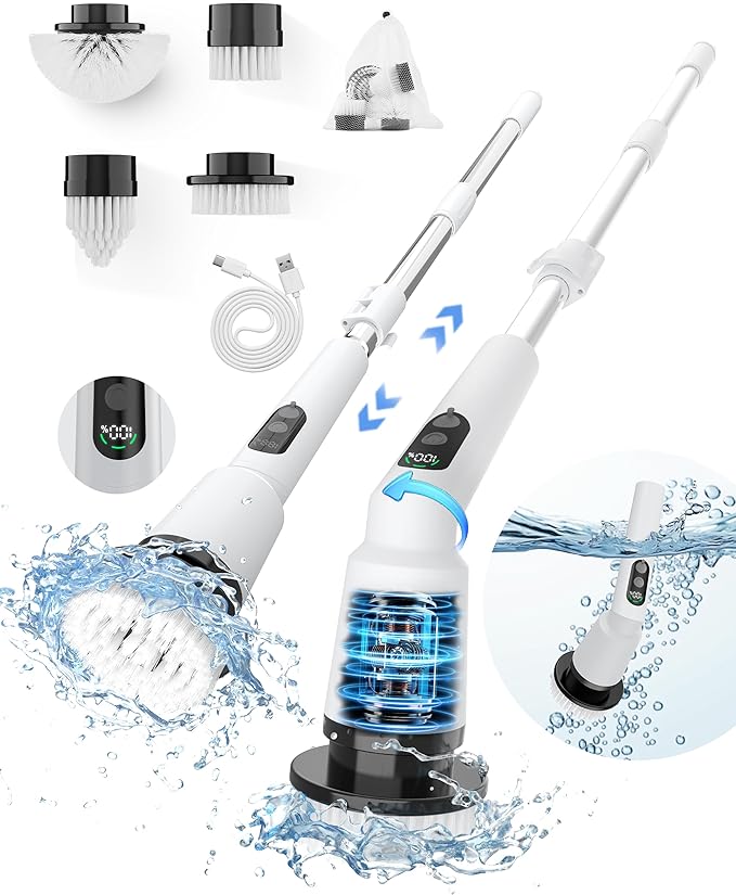 - Tags: 2500mah battery, Adjustable handle, Bathroom cleaner, Cordless cleaning tool, Created by product upload, Electric spin scrubber, Home cleaning, Ipx7 scrubber, Kimeetol, Multi‑brush head, Waterproof cleaning brush
