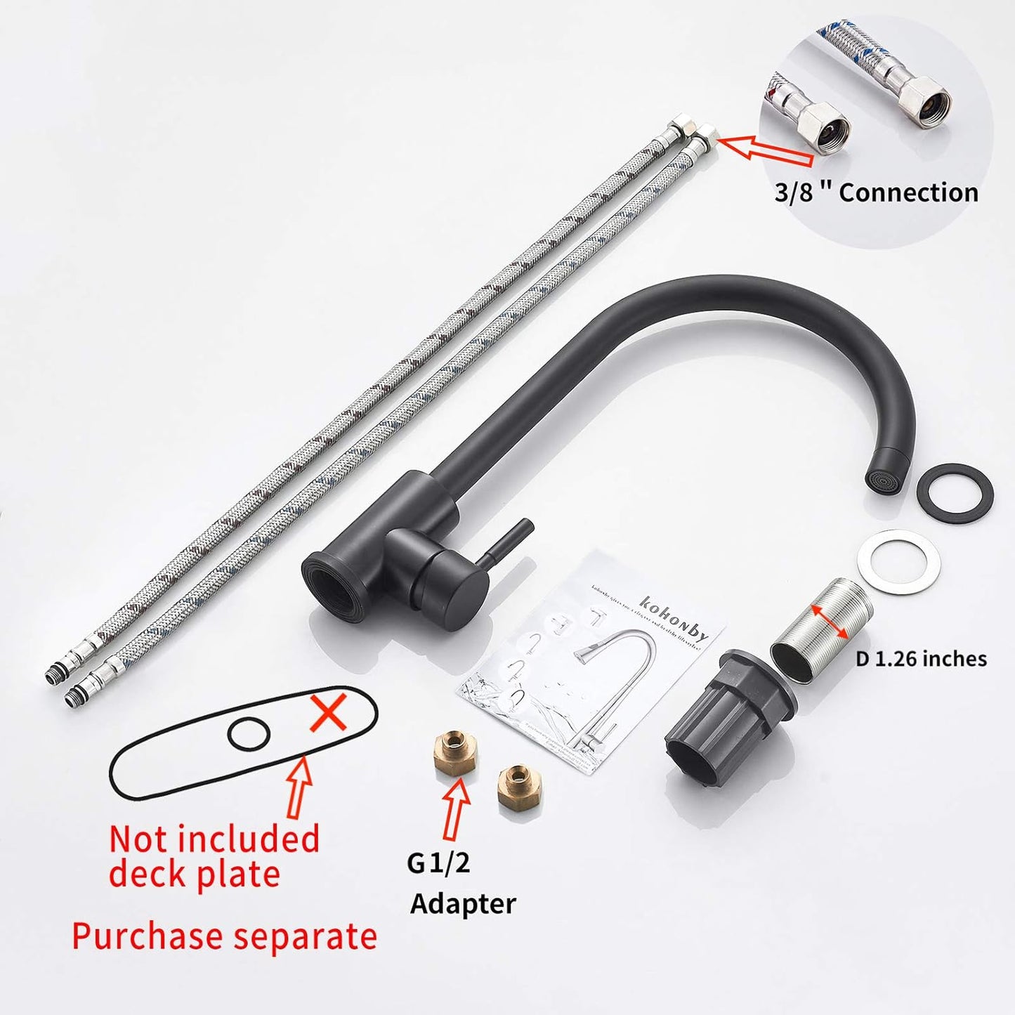 This sleek kitchen faucet sports a high‑arc spout that swivels a full 360°, giving you freedom to rinse large pots with ease. Crafted from corrosion‑proof SUS 304 stainless steel, its matte‑black finish stays spotless after countless washes. A durable ceramic‑disc cartridge guarantees drip‑free performance and precise temperature control. Installation is a breeze with the 23.6‑inch supply hose and all mounting hardware included.