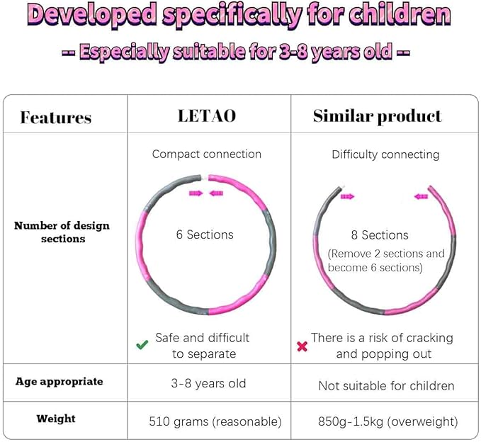 - Tags: 72cm hula hoop, Adjustable hula hoop, Children exercise, Created by product upload, Fitness toy, Kids hula hoop, Letao, Massage nodes, Pink grey hula hoop