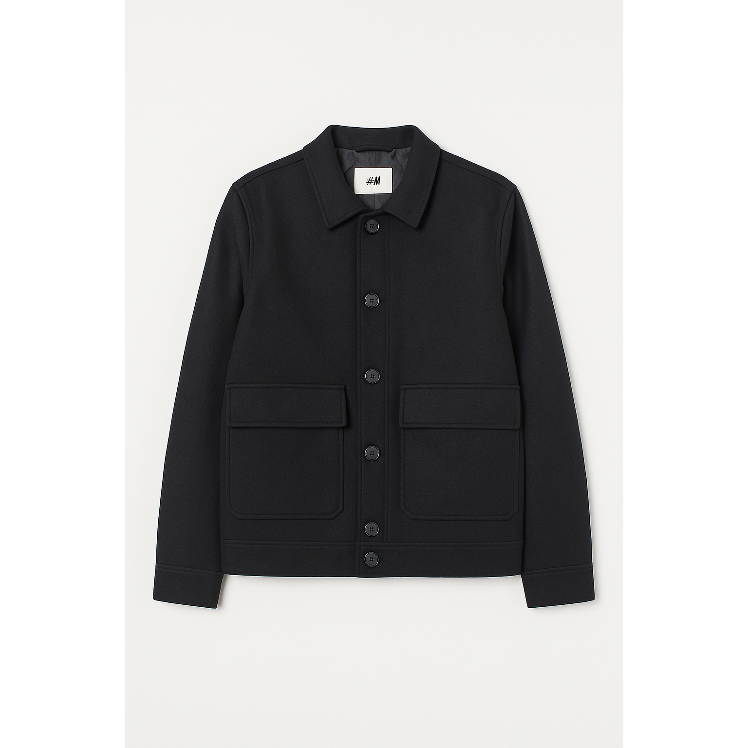 A sleek H&M ORIGINAL marine‑blue coat that blends warm wool with lightweight polyester for cozy style. The classic lapel collar and adjustable cuff straps add a touch of polish. Front flap pockets with button closures keep essentials handy while the internal pocket offers secret storage. Perfect for layering over sweaters on crisp days.