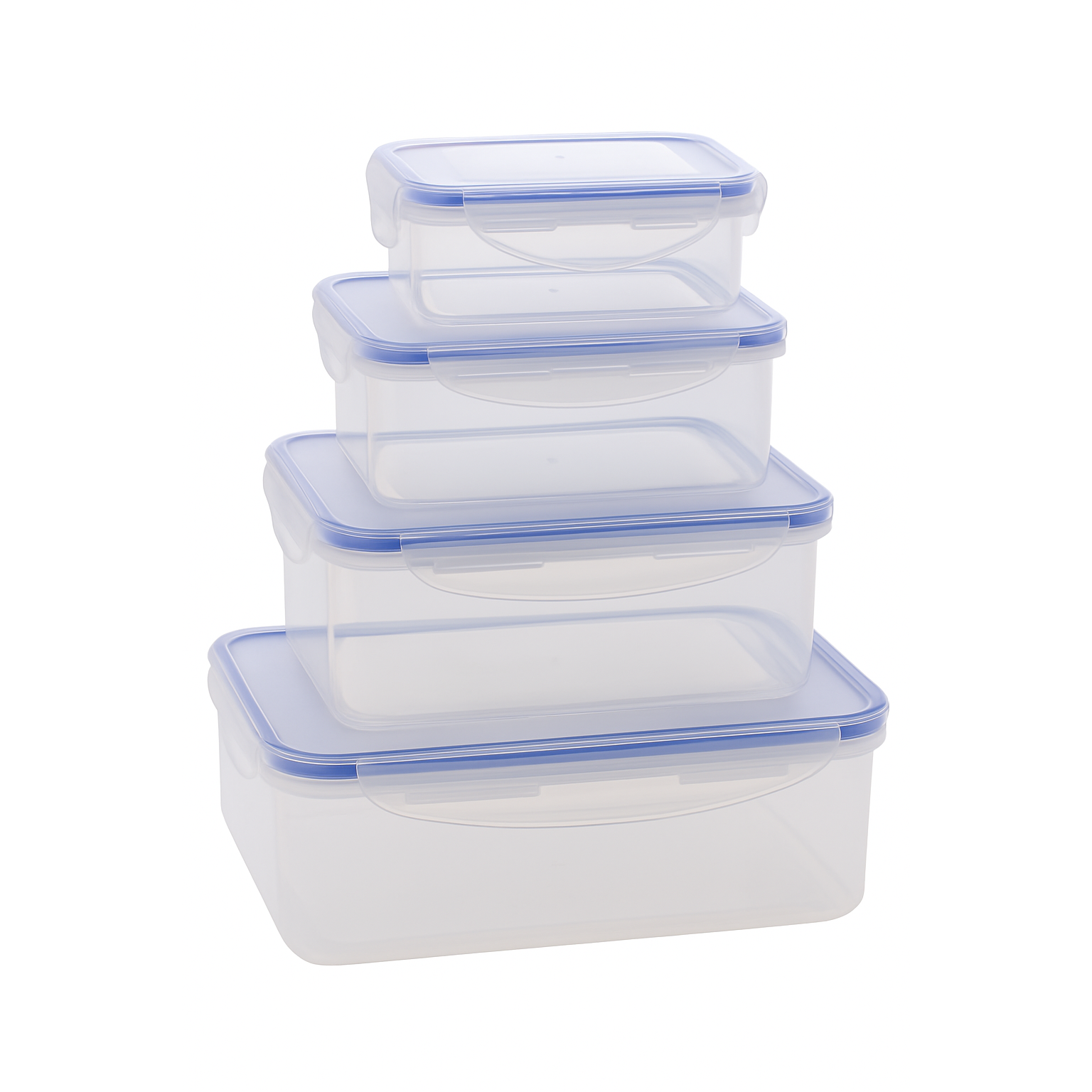These four airtight containers keep food fresh and organized. Each container features a snap‑lock lid that creates a leak‑proof seal. They are microwave, dishwasher, and freezer safe for versatile use. The clear BPA‑free plastic lets you see contents at a glance.