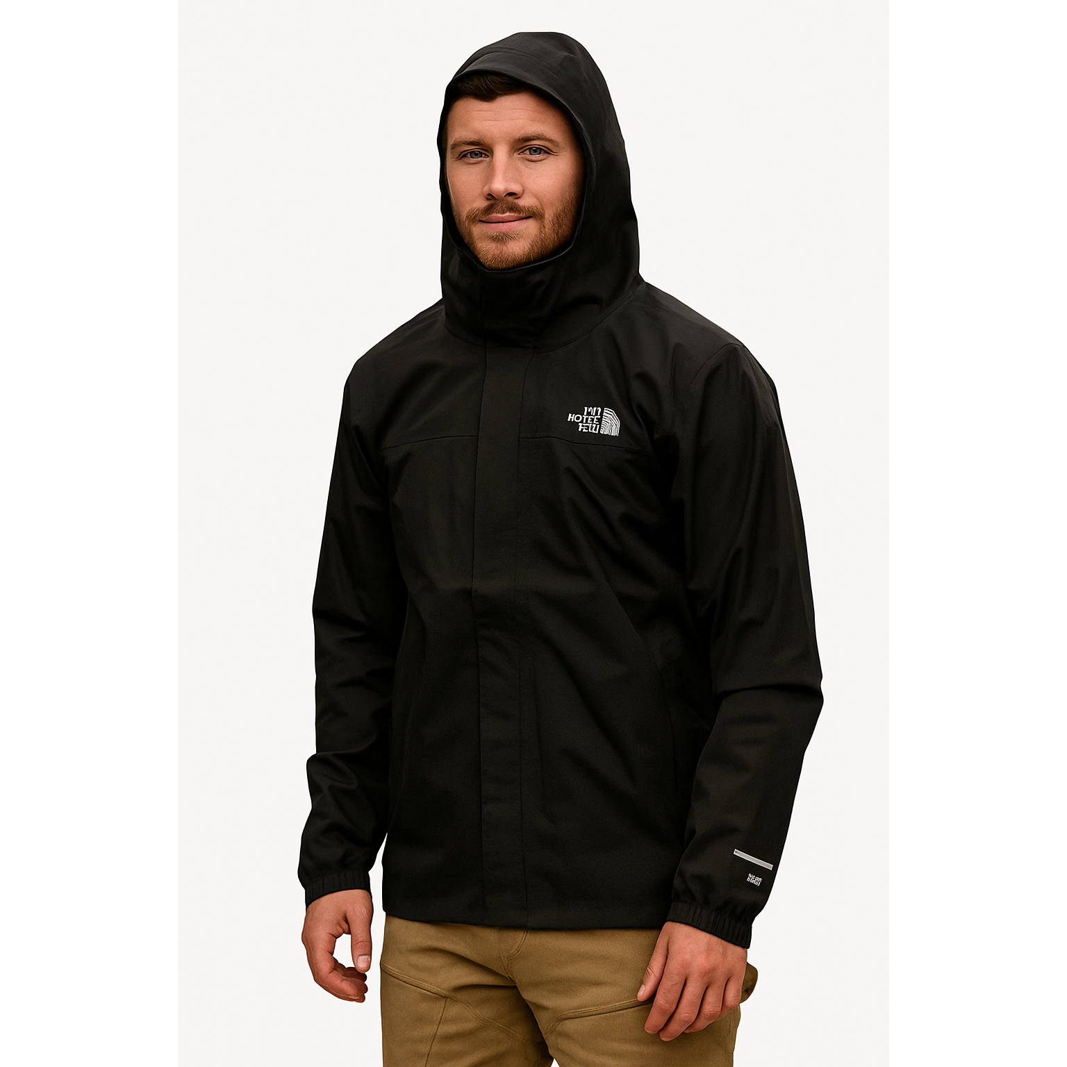 Meet the men’s black waterproof shell jacket by The North Face, featuring their signature DryVent™ technology. This jacket is tailored for both city streets and rainy-outdoor excursions with the following standout features: