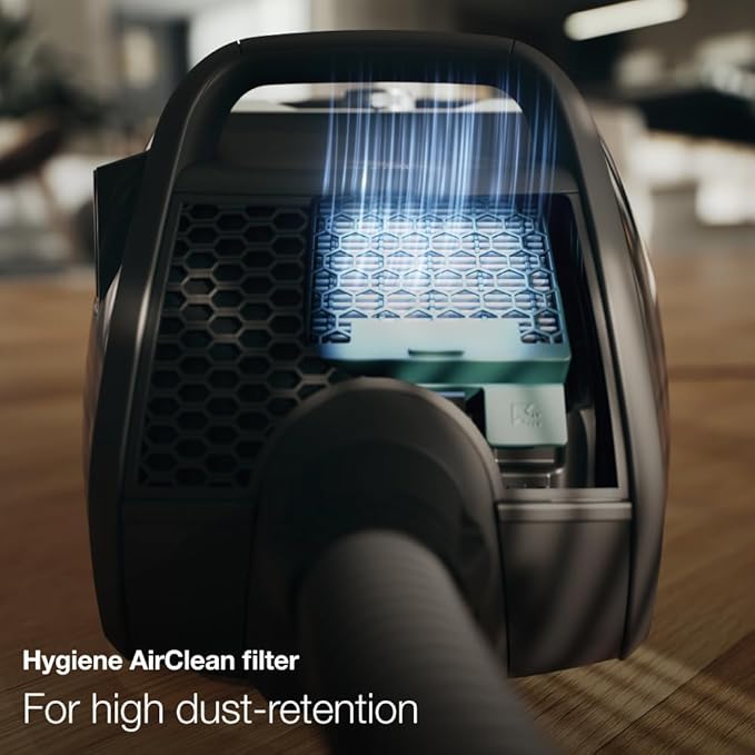 Unleash cleaning magic with this compact bagless cylinder vacuum cleaner! Its powerful vortex technology captures both coarse and fine dust, leaving your home sparkling. Maneuver effortlessly thanks to its stable TrackDrive wheels, and enjoy hygienic air with the efficient Hygiene AirClean filter. This versatile cleaner tackles all surfaces with its universal floorhead, and the comfort telescopic tube ensures a perfect fit for everyone.