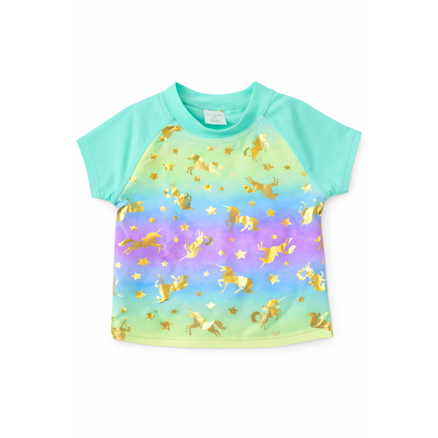 Okie Dokie Baby Girls Unicorn Print Short-Sleeve Rash Guard Top