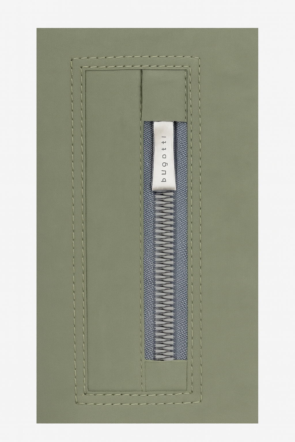Presenting the original Bugatti jacket—a sophisticated, modern outerwear piece that combines functionality with understated elegance. This men’s jacket comes in a light olive green tone, crafted from a smooth, slightly lustrous fabric that gives it a refined look.