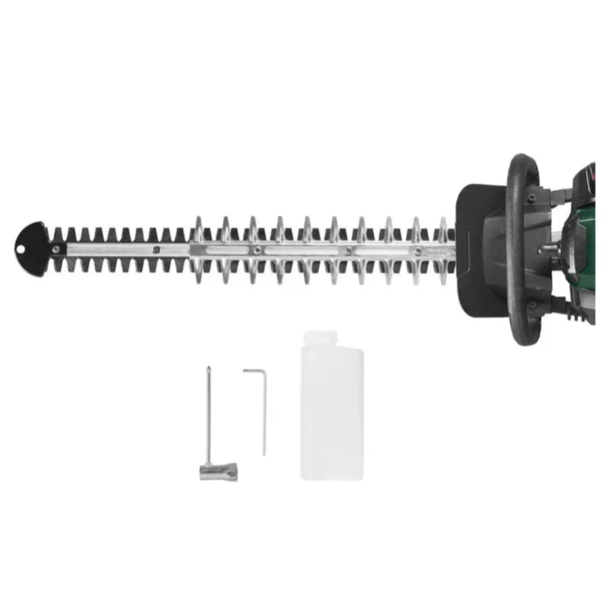 Powerful 650 W (0.88 hp) two‑stroke engine delivers swift, clean cuts up to 56 cm long. Its lightweight 5.5 kg design and anti‑vibration handle keep fatigue at bay during long sessions. A primer‑assist start and safety switch with quick blade stop add convenience and protection. Comes with a mixing container, spark‑plug wrench and 4 mm Allen key for easy maintenance.