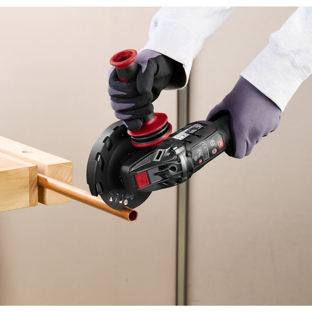 | Tool-free guard & disc change | 2-in-1 adjustable protective guard; quick-release/spindle lock for fast changes |