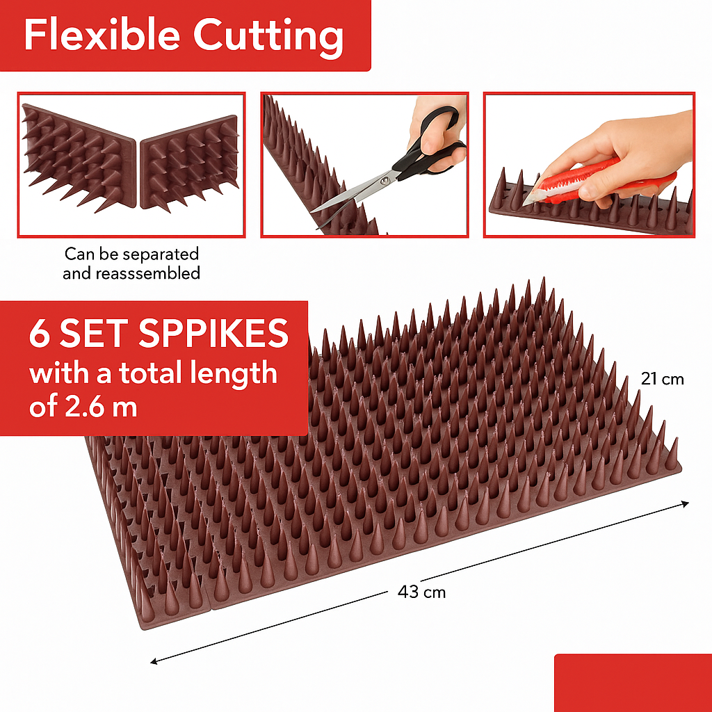 Rid your property of unwanted avian visitors with Pattler Bird Repellent Spikes! Made from robust plastic, these spikes are designed to deter pigeons and other birds from landing on balconies, roofs, windowsills, and fences. Each set includes 6 pieces, providing a total length of 8.46 feet of effective bird deterrent. Keep your space clean and bird-free with these easy-to-install and long-lasting spikes!