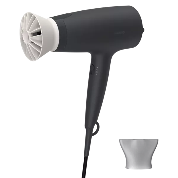 Wave goodbye to bad hair days with the Philips 3000 Series hairdryer. This mighty little device packs a 1600W punch for quick and efficient drying. The ThermoProtect attachment ensures gentle drying and protects your precious locks. With three heat and speed settings, plus a cool air option, styling is a breeze, and the slim nozzle lets you achieve precise, salon-worthy finishes right at home.