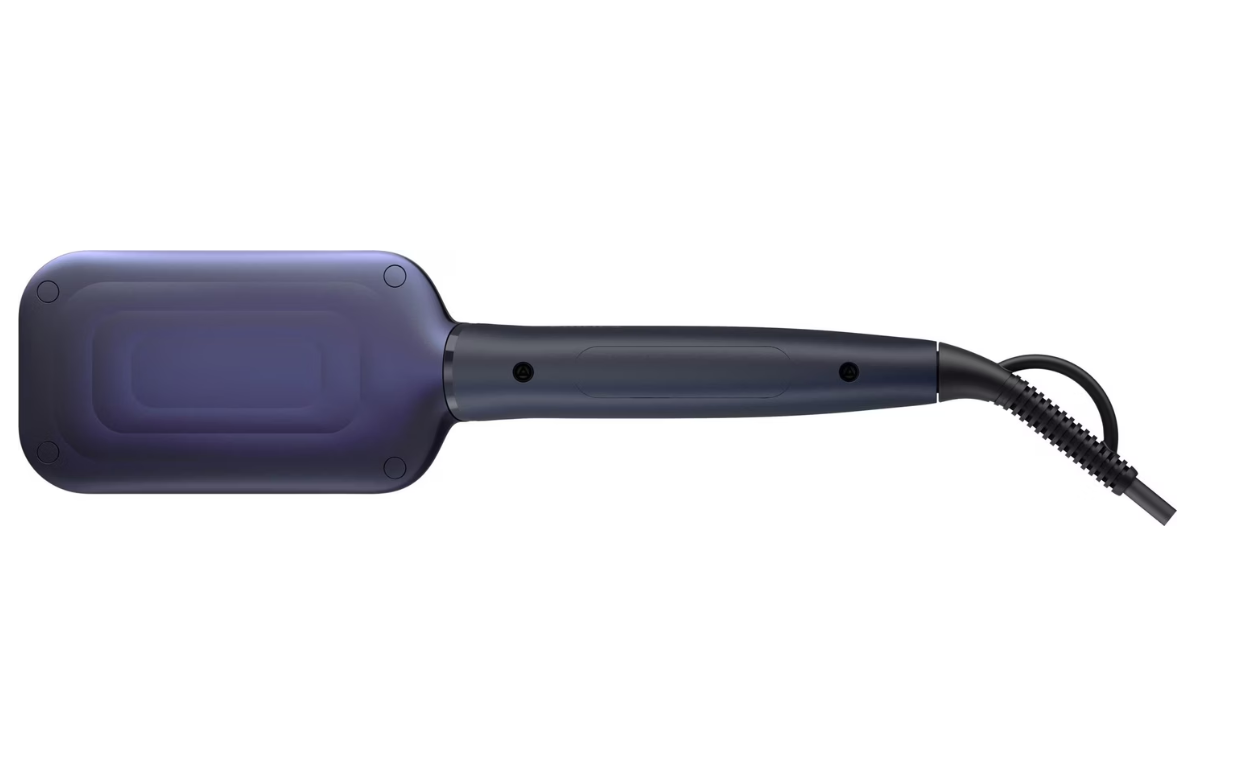The Philips Series 5000 BHH885/00 heated straightening brush is designed for quick, easy styling that gives you naturally straight and shiny hair. It features ThermoProtect technology to distribute heat evenly and prevent overheating, along with ionic care to minimize frizz and maximize shine. The brush has a triple bristle design for detangling and straightening, and a large paddle shape for efficiently styling larger sections of hair. There are three temperature settings and heats up in just 50 seconds, with a 5.9 ft swivel cord for flexible styling, so get styling!