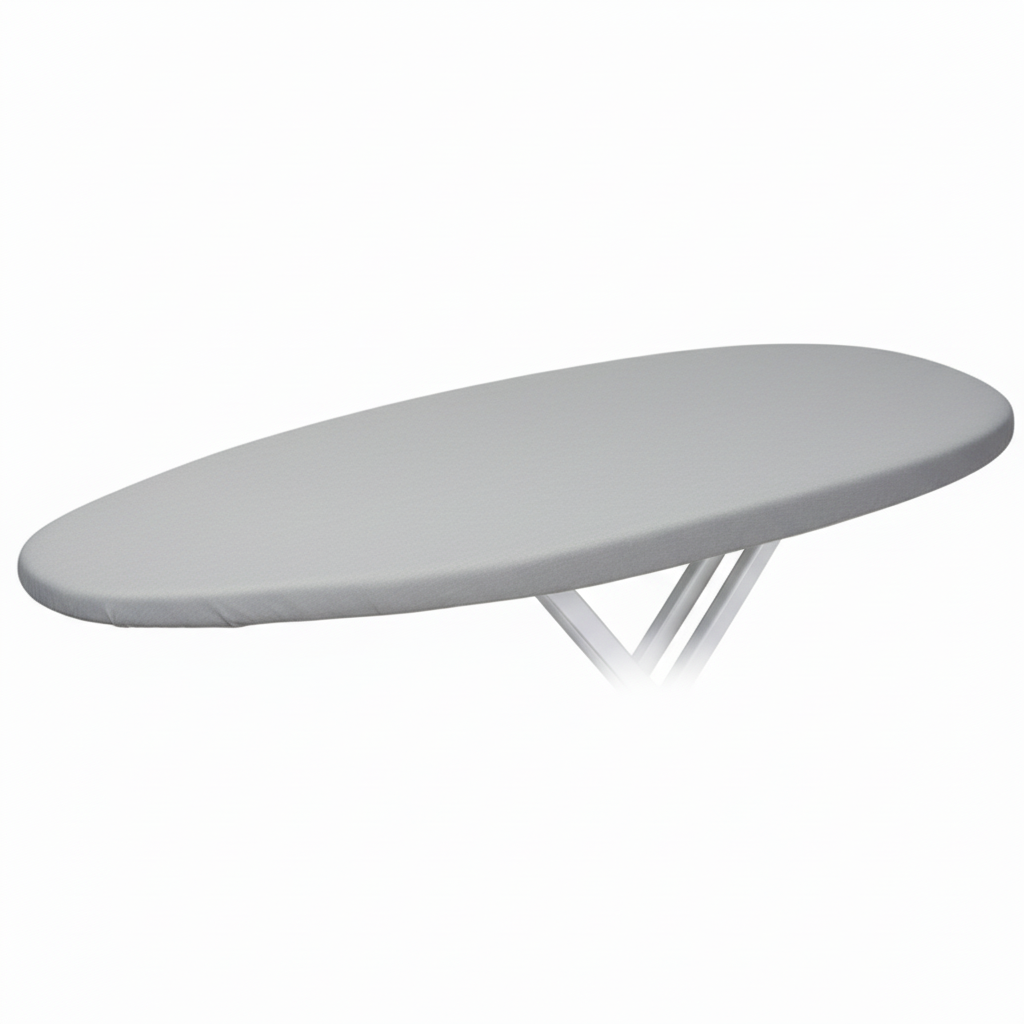 Adjustable ironing board cover fits boards up to 126 × 40 cm. Made from 100% cotton with a foam base and flannelette layer for smooth ironing. EasyClip system ensures quick, secure fitting. Stylish grey with pink polka‑dot pattern adds a touch of charm.