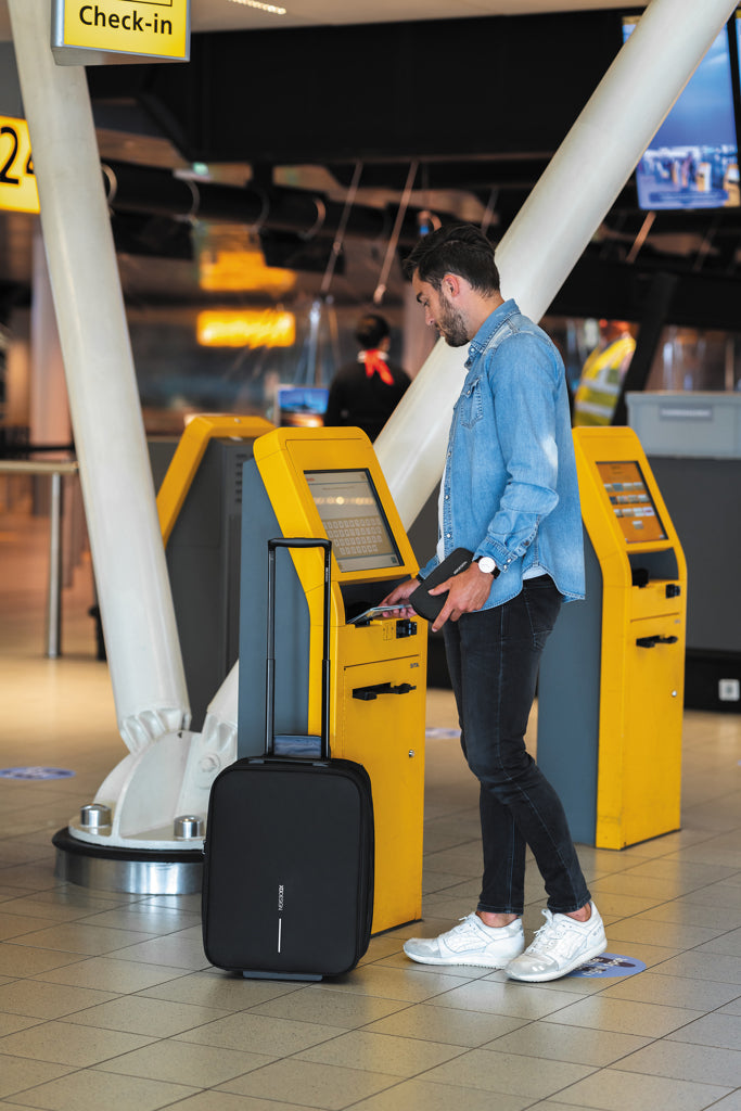 Travel light with this sleek black passport holder that tucks your passport safely inside. A built‑in RFID shield stops unwanted scanning while a magnetic flap keeps everything secure. The front pocket slides your boarding pass in and out with a satisfying click. Crafted from durable materials, it’s ready for any adventure.