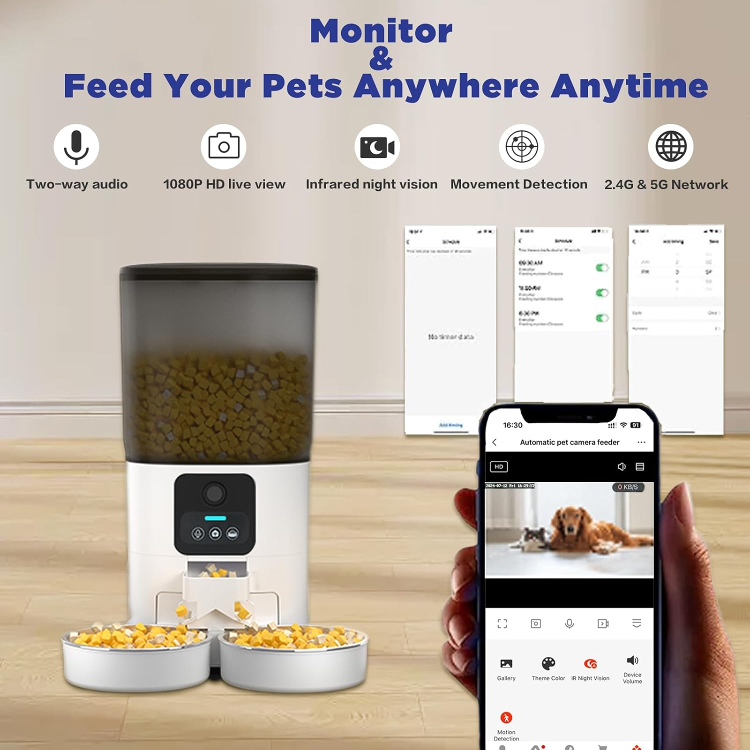- Tags: 5g wifi pet feeder, Automatic cat feeder, Cat food dispenser, Created by product upload, Dog feeder camera, Dual pet feeder, Large capacity cat feeder, Pet feeder with camera, Remote pet feeding, Smart pet feeder, Two-way audio pet feeder